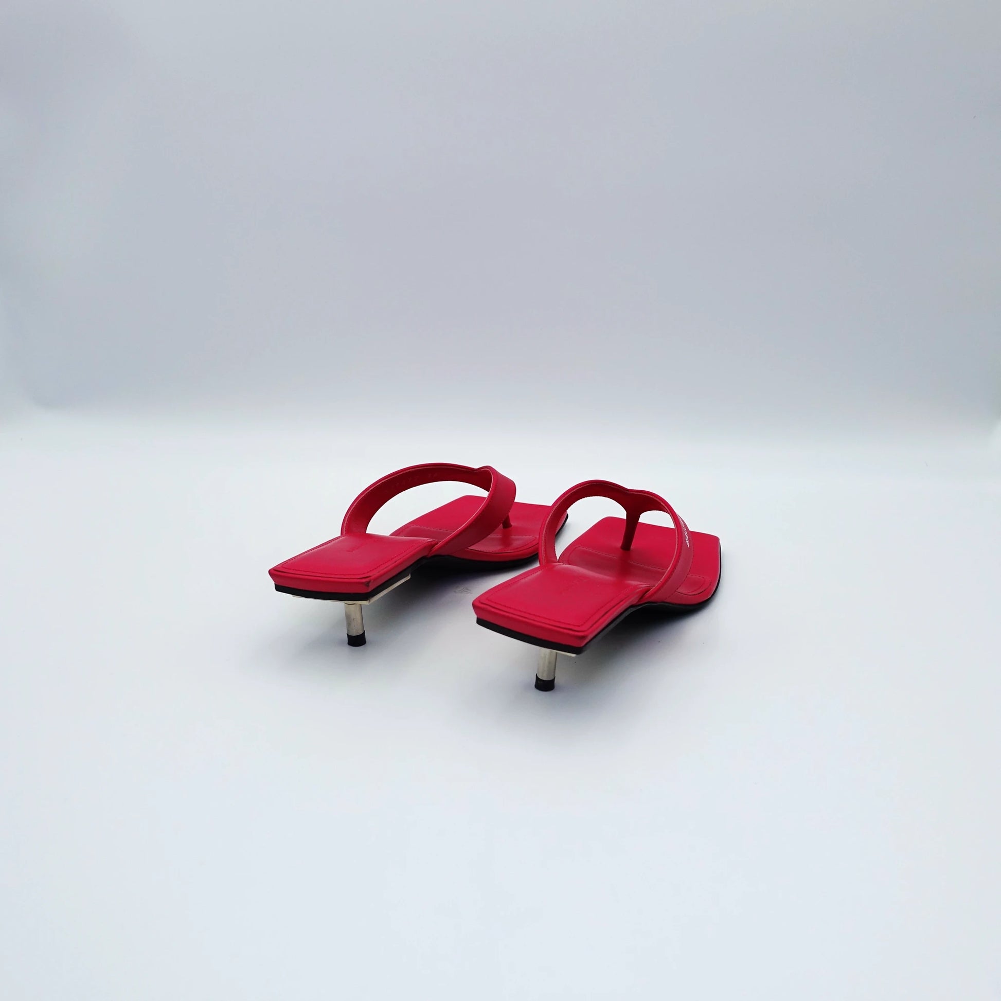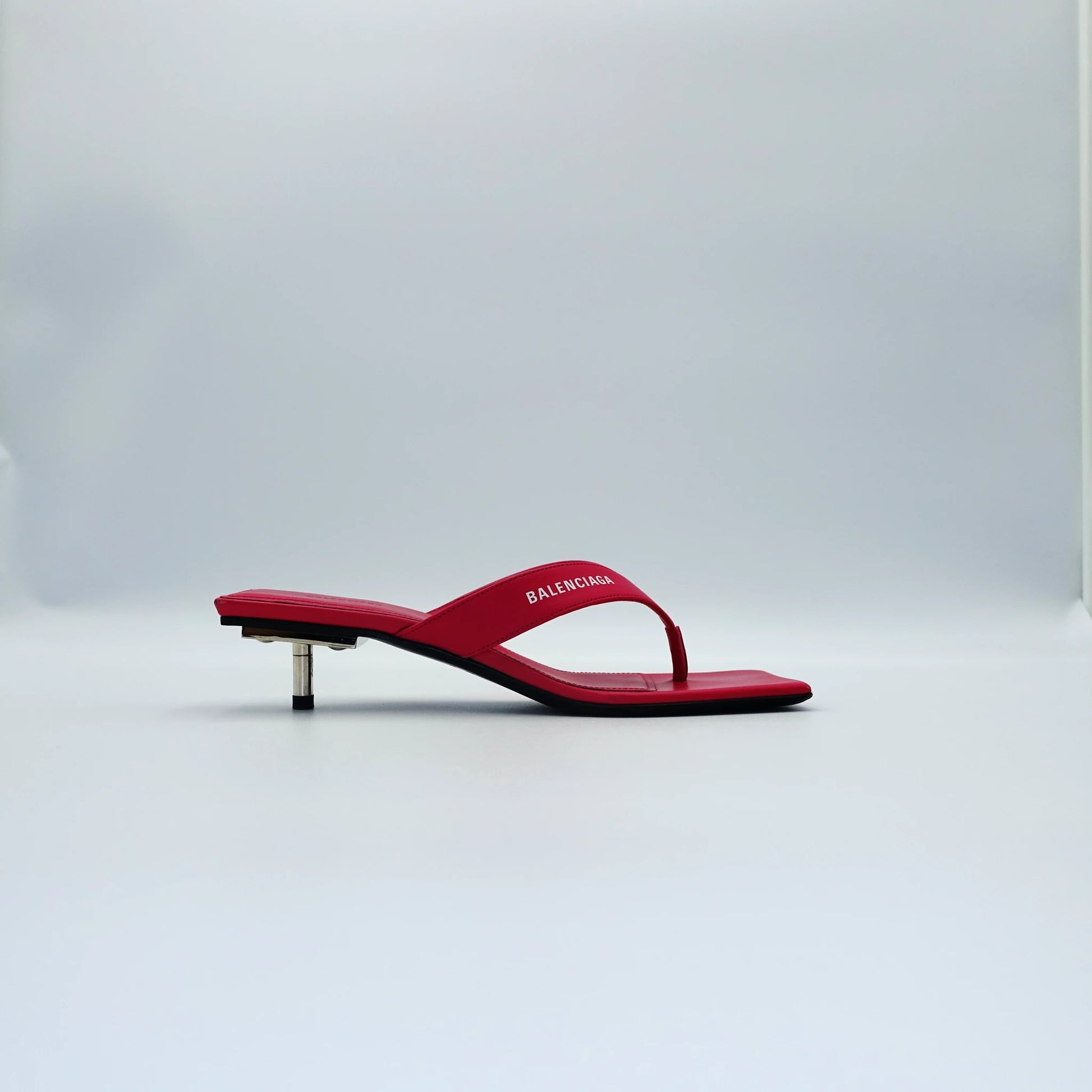 These Balenciaga sandals embody the brand’s sleek logo aesthetic under Demna Gvasalia. Crafted in vibrant pink leather with a squared-off sole and subtle logo print, they offer a bold yet versatile summer statement. Lightweight and easy to style, they’re perfect for resort wear, city strolling, or a casual luxe twist.
