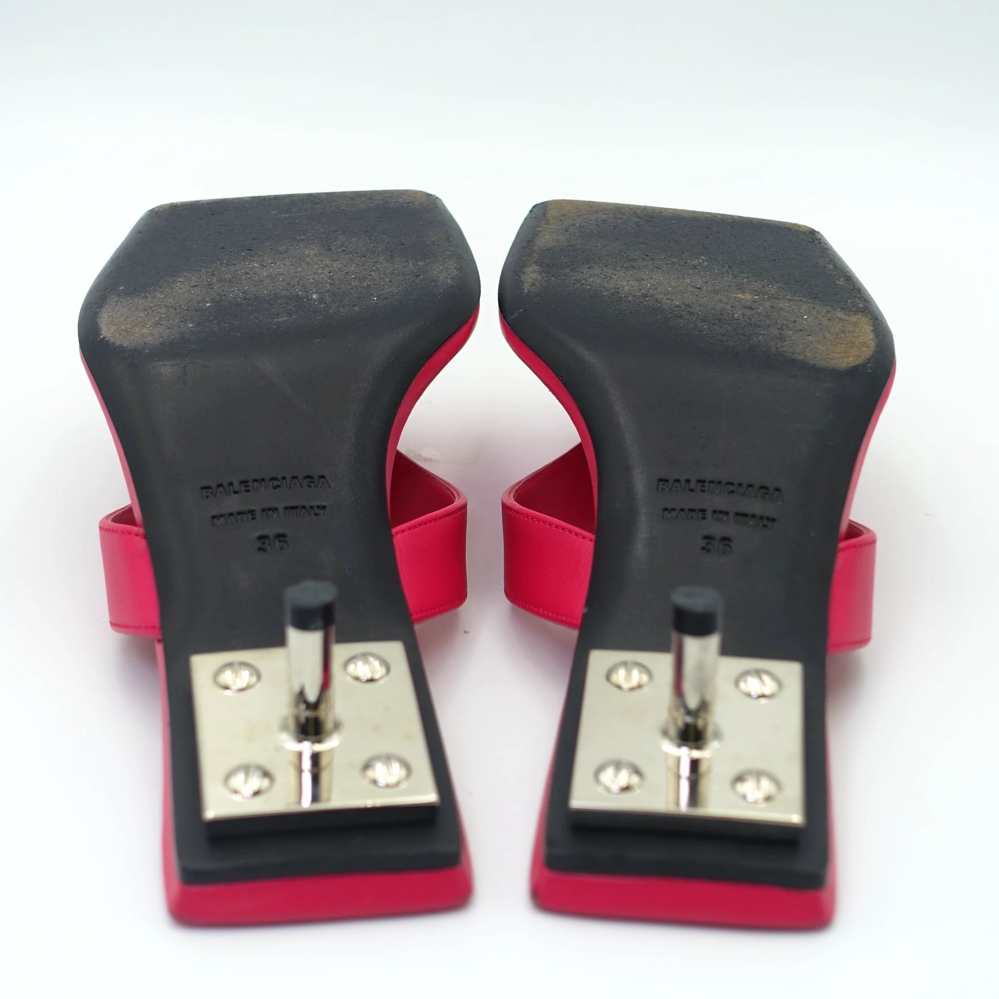 Balenciaga Black Leather Square Toe Thong Slide Sandals EU36