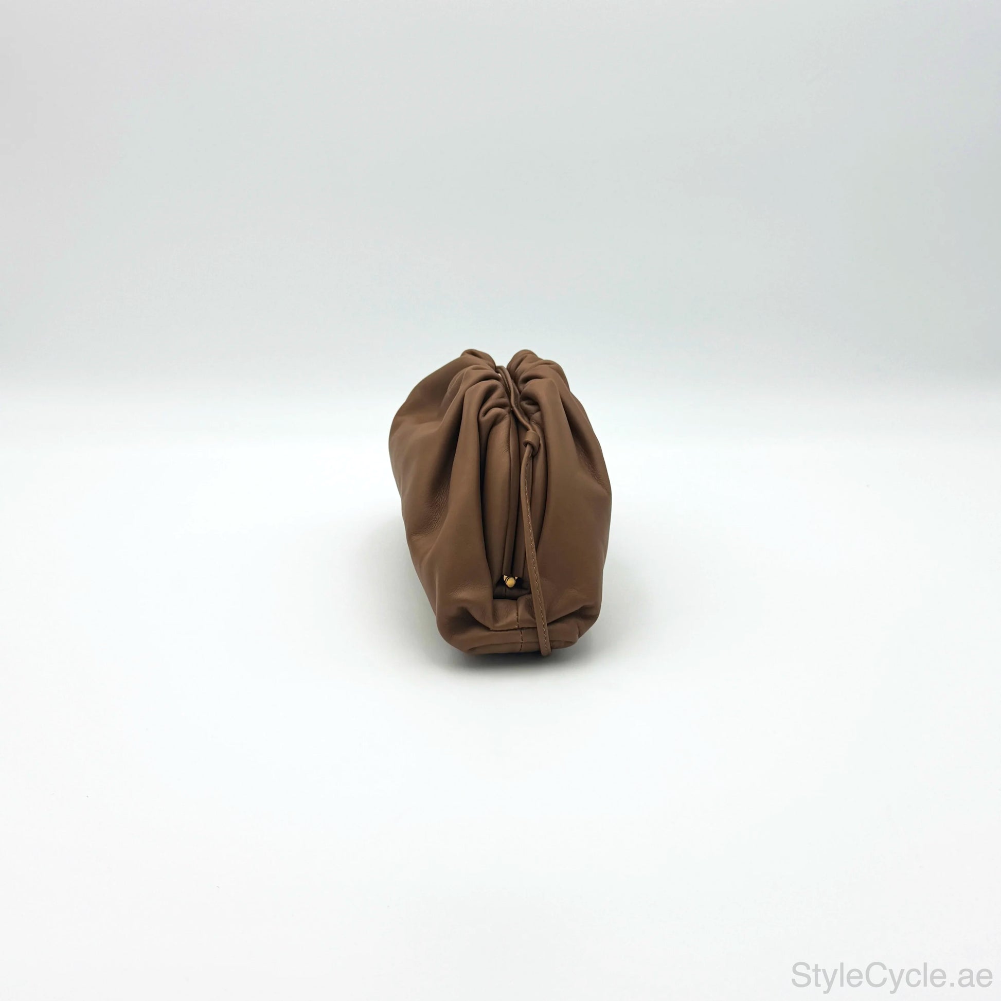 The Bottega Veneta Pouch is one of the house’s most iconic modern designs, introduced under creative director Daniel Lee. This small-sized edition is crafted from luxurious brown leather, designed with the brand’s signature soft folds and minimalist drawstring closure. Compact yet chic, it can be carried by hand as a clutch or worn crossbody with the slender strap, making it a versatile statement piece for both casual daywear and elegant evenings.