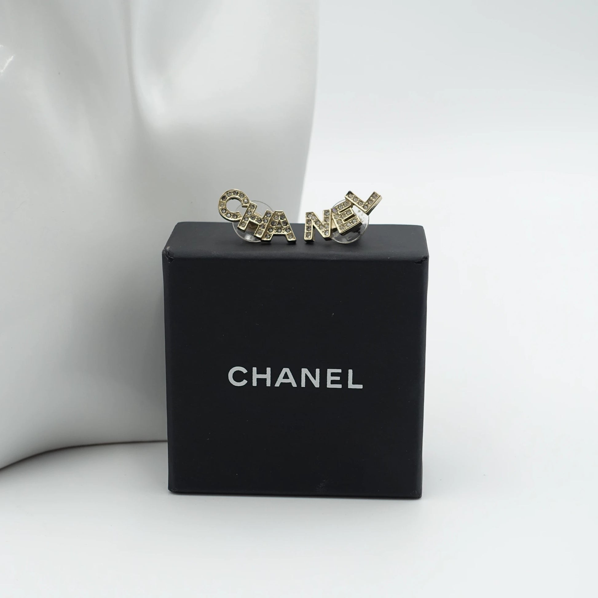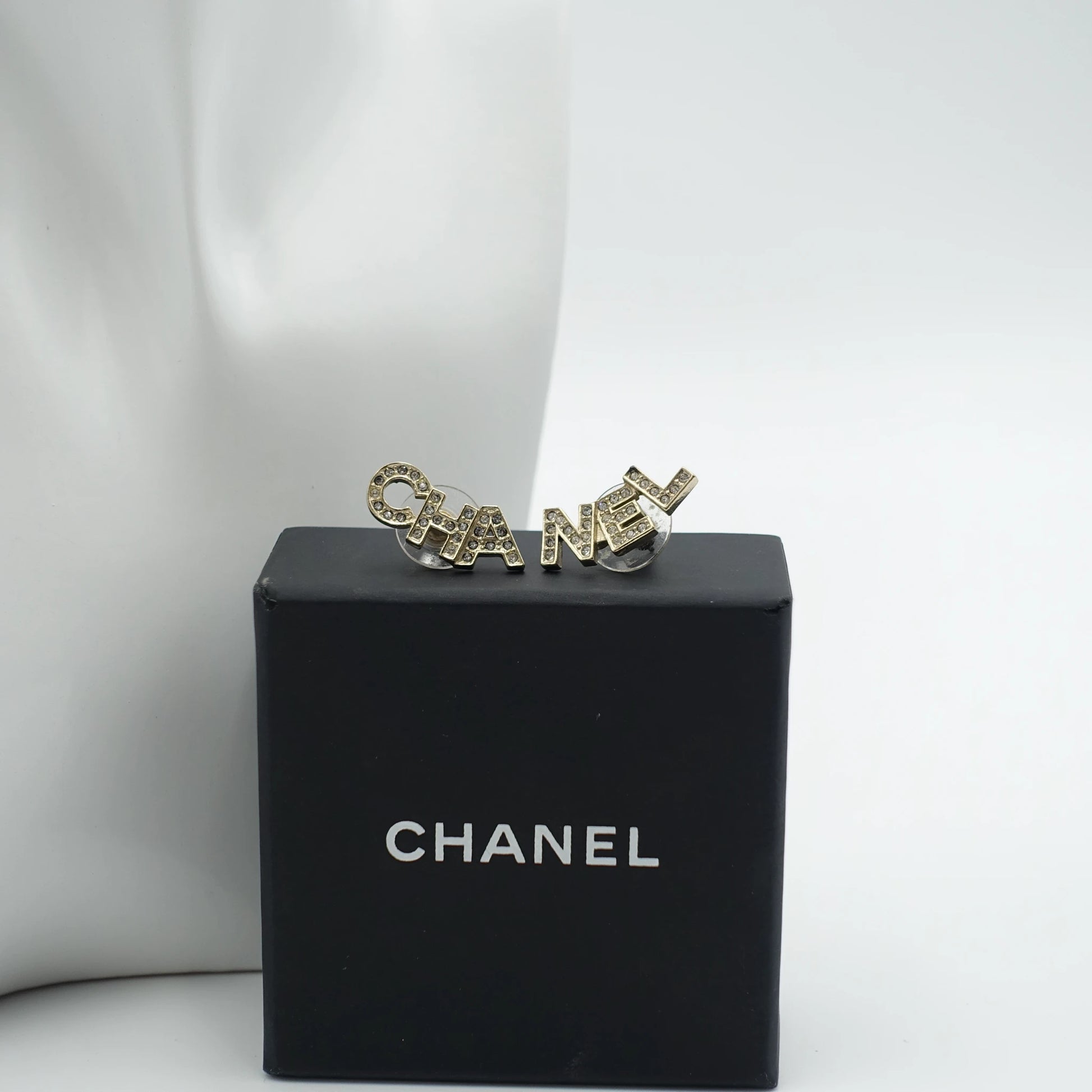 *RARE* Chanel Rhinestone Logo “CHANEL” Statement Stud Earrings