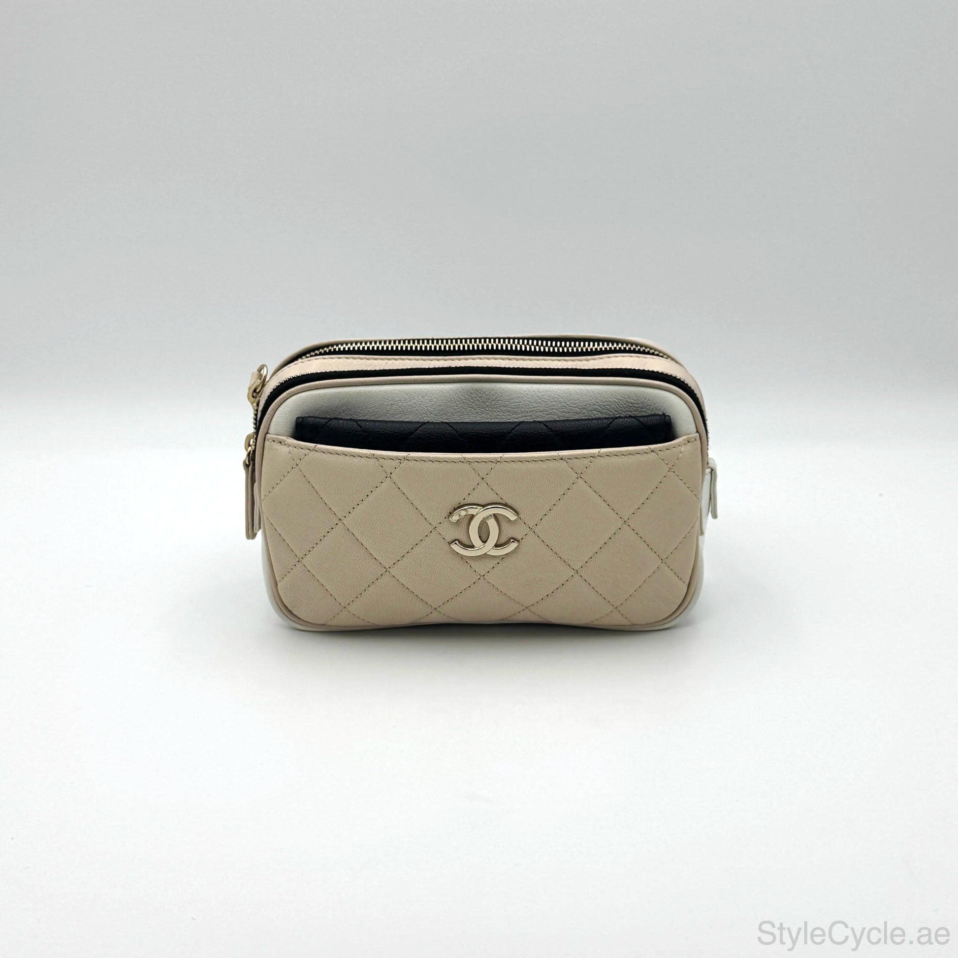Chanel Waist Bag in Beige & Black Quilted Calfskin