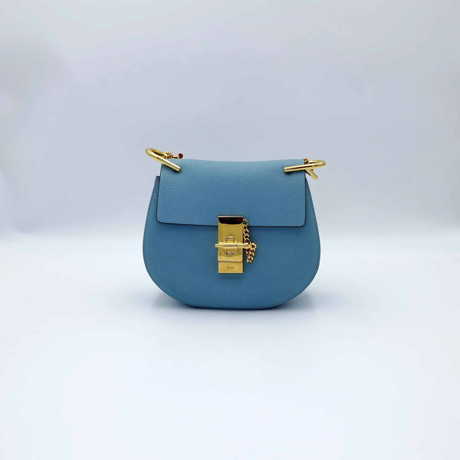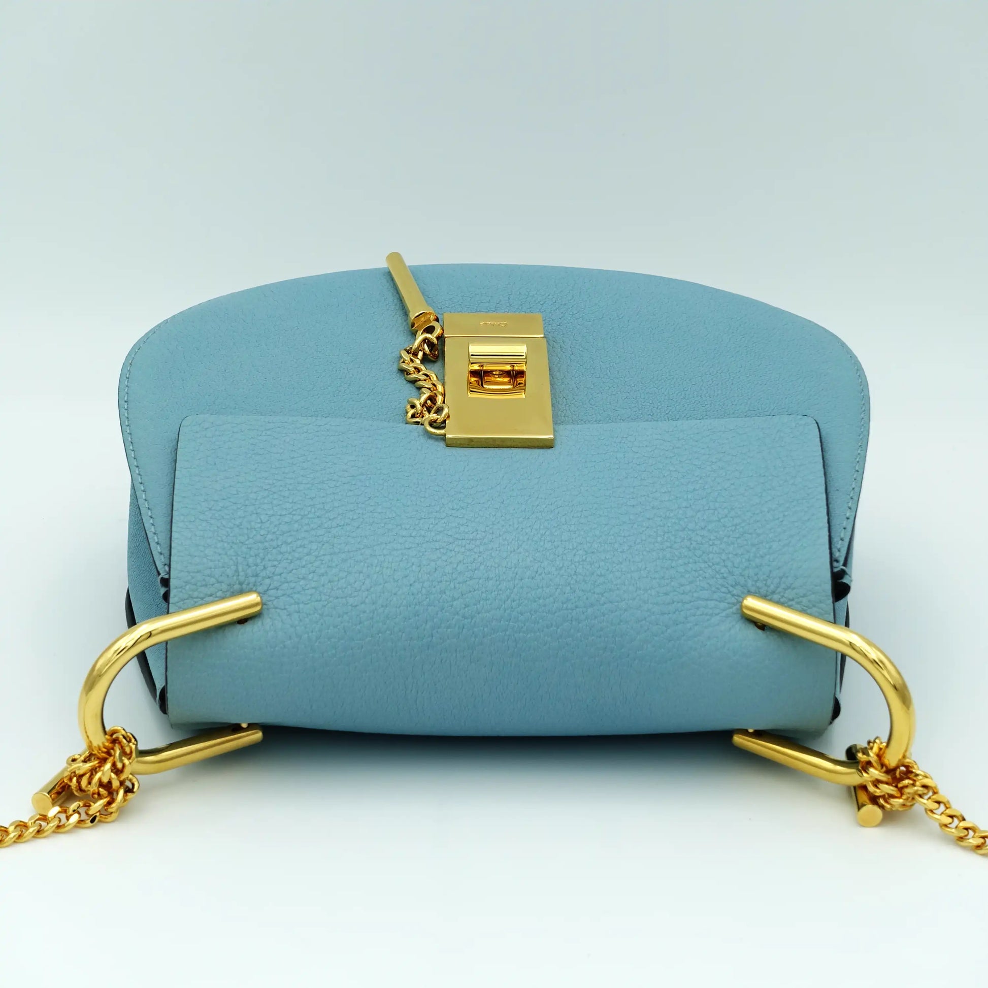 Chloe Mini Drew Bag in Cloud Blue with Gold Chain