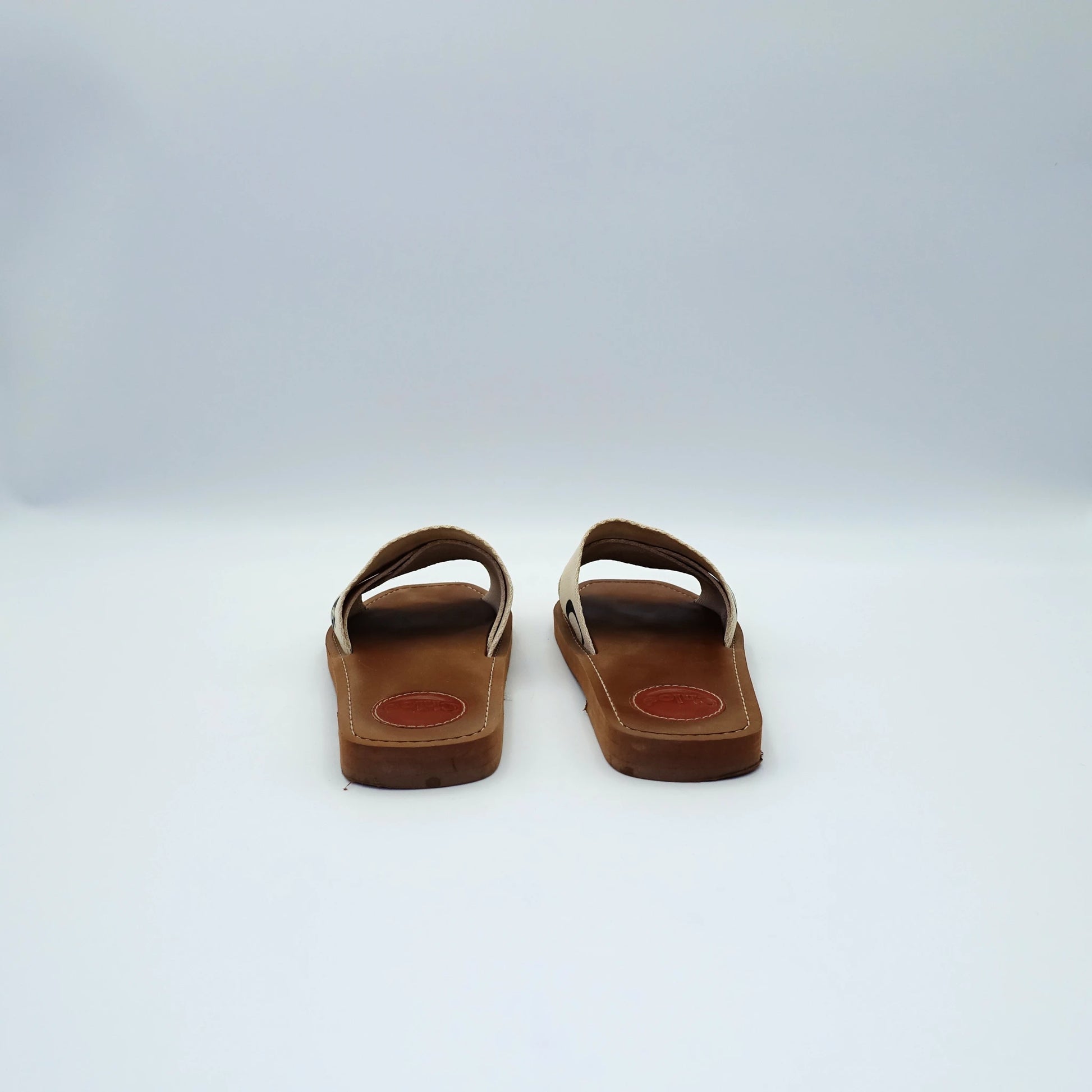 The Chloé Woody Logo Slides are a modern wardrobe essential, blending effortless Parisian chic with everyday versatility. Crafted from durable canvas with the house’s bold black logo across the strap, these slides rest on a smooth leather footbed for comfort and a flat rubber sole for easy wear. A cult favourite since their launch in 2019, the Woody slides remain one of Chloé’s most recognisable and best-selling designs, pairing seamlessly with summer dresses, tailored shorts, or denim.