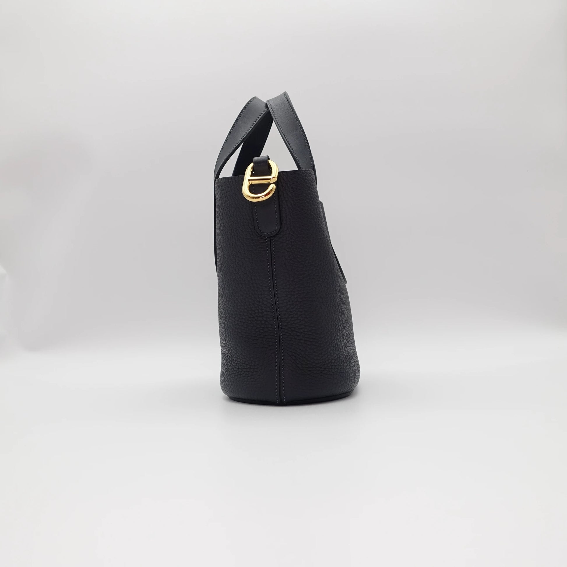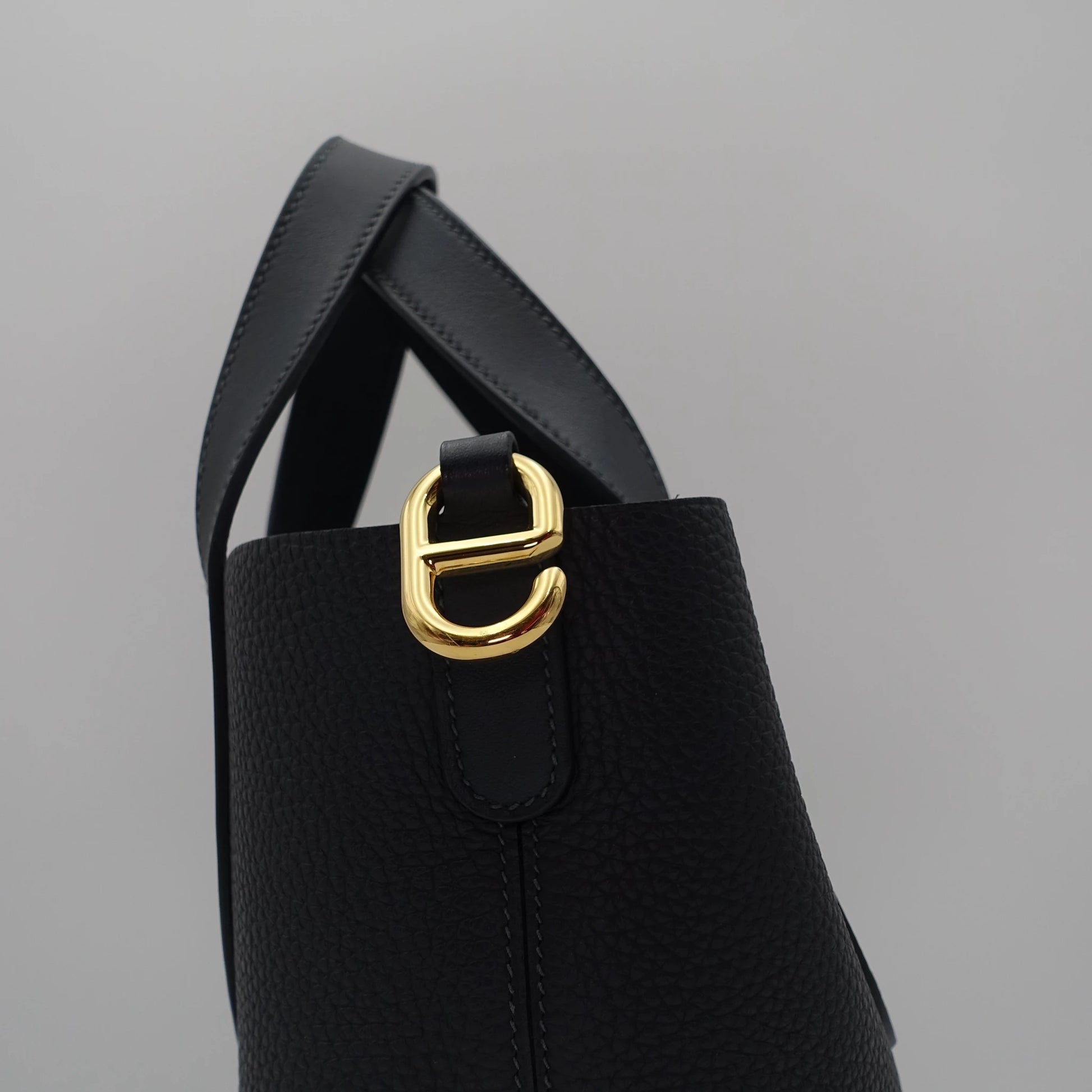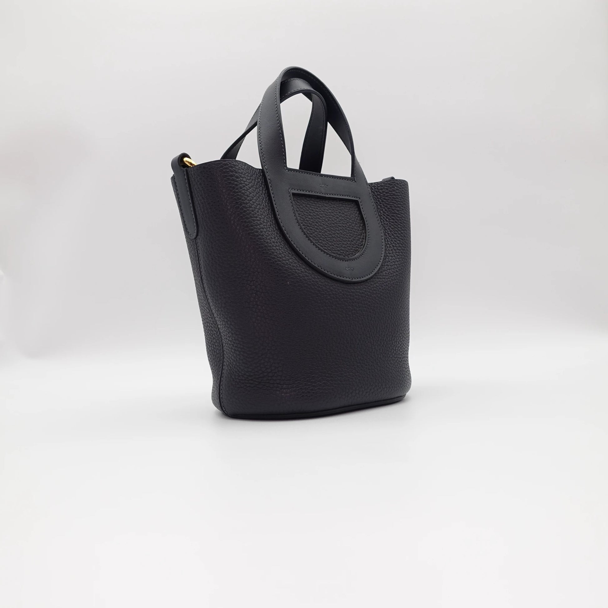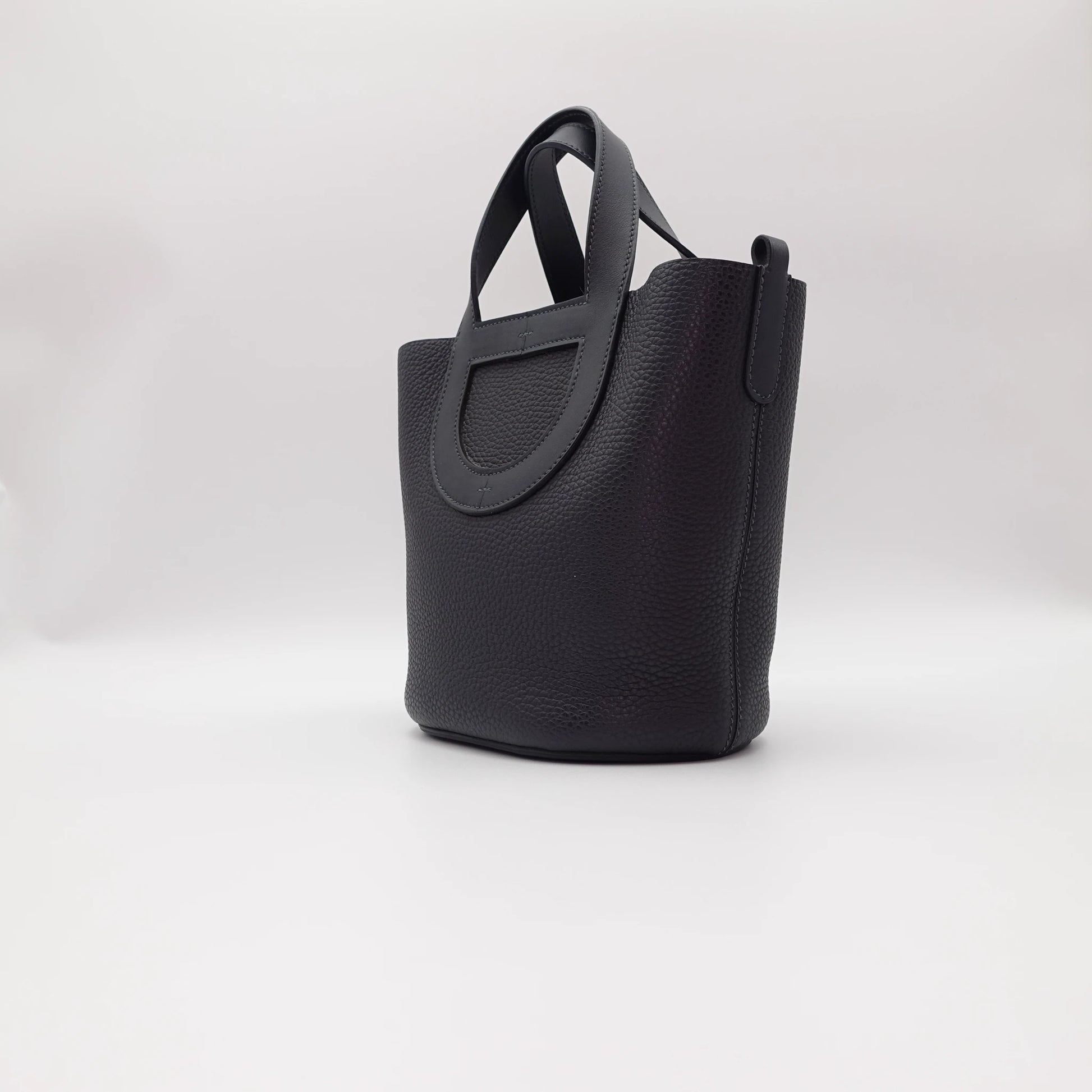 This Hermès In-the-Loop 18, crafted in Clémence leather in the rich Bleu Nuit shade, blends elegance with modern functionality. The signature loop-handle and the subtle Chaîne d’Ancre-inspired base detail reflect the house’s refined design language. Ideal for daily wear or an elevated evening look, this compact size fits essentials while maintaining a sleek silhouette.