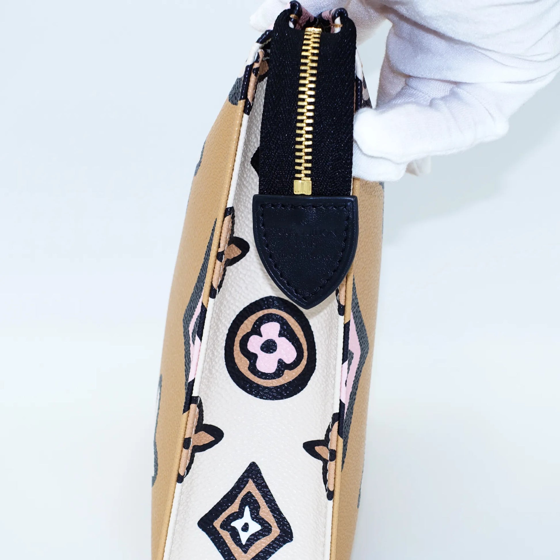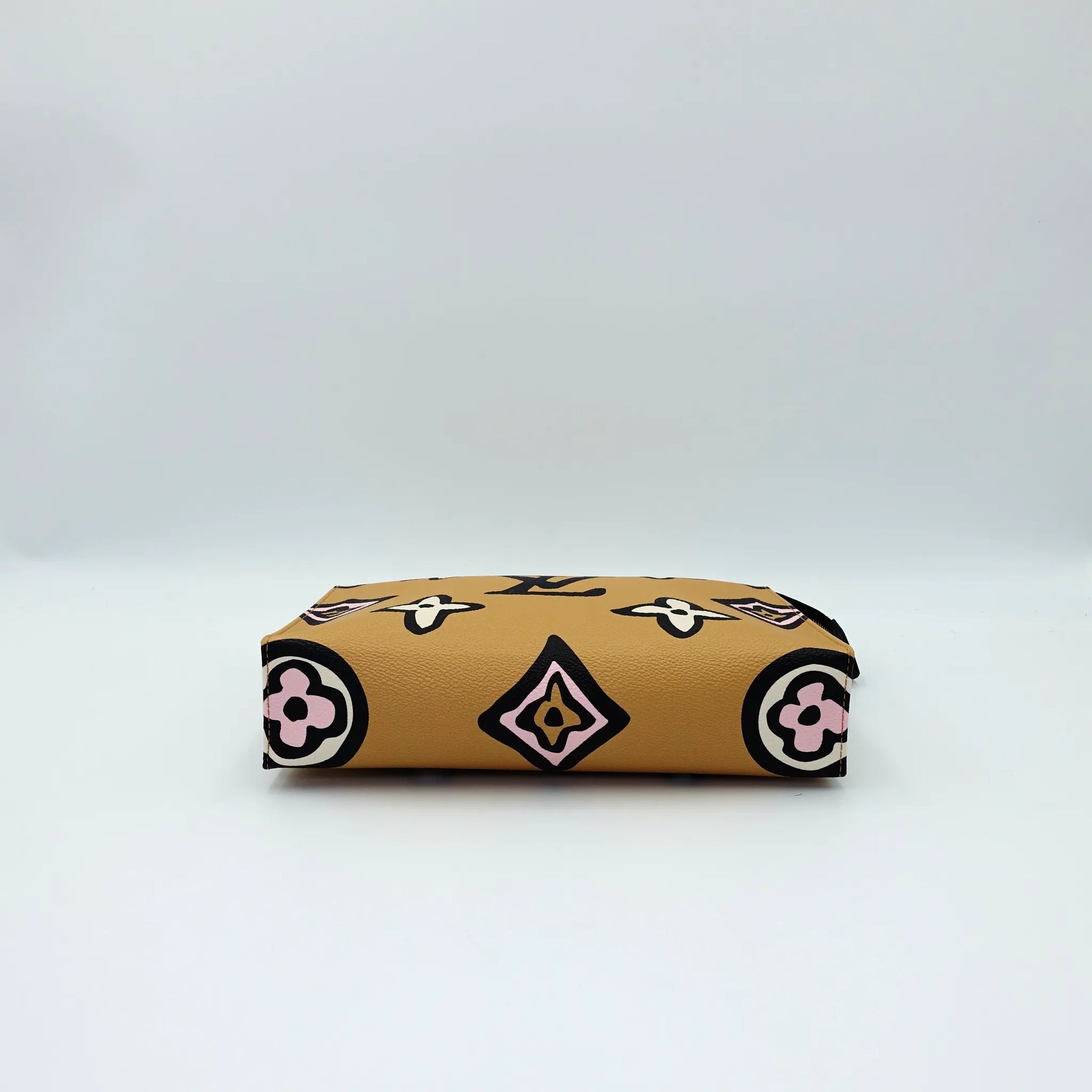 From Louis Vuitton’s highly coveted Fall 2021 Wild At Heart collection, the Monogram Giant Toiletry Pouch 26 in Arizona is a striking reinterpretation of the classic travel pouch. Crafted in oversized Monogram coated canvas with hand-drawn style motifs in cream, blush pink, and warm Arizona tan, it captures the playful yet sophisticated spirit of the capsule. The wipe-clean lining ensures practicality, while the slim profile and structured silhouette allow it to double as a statement clutch or travel organiser. Discontinued and limited in production, this piece is a collector’s dream.