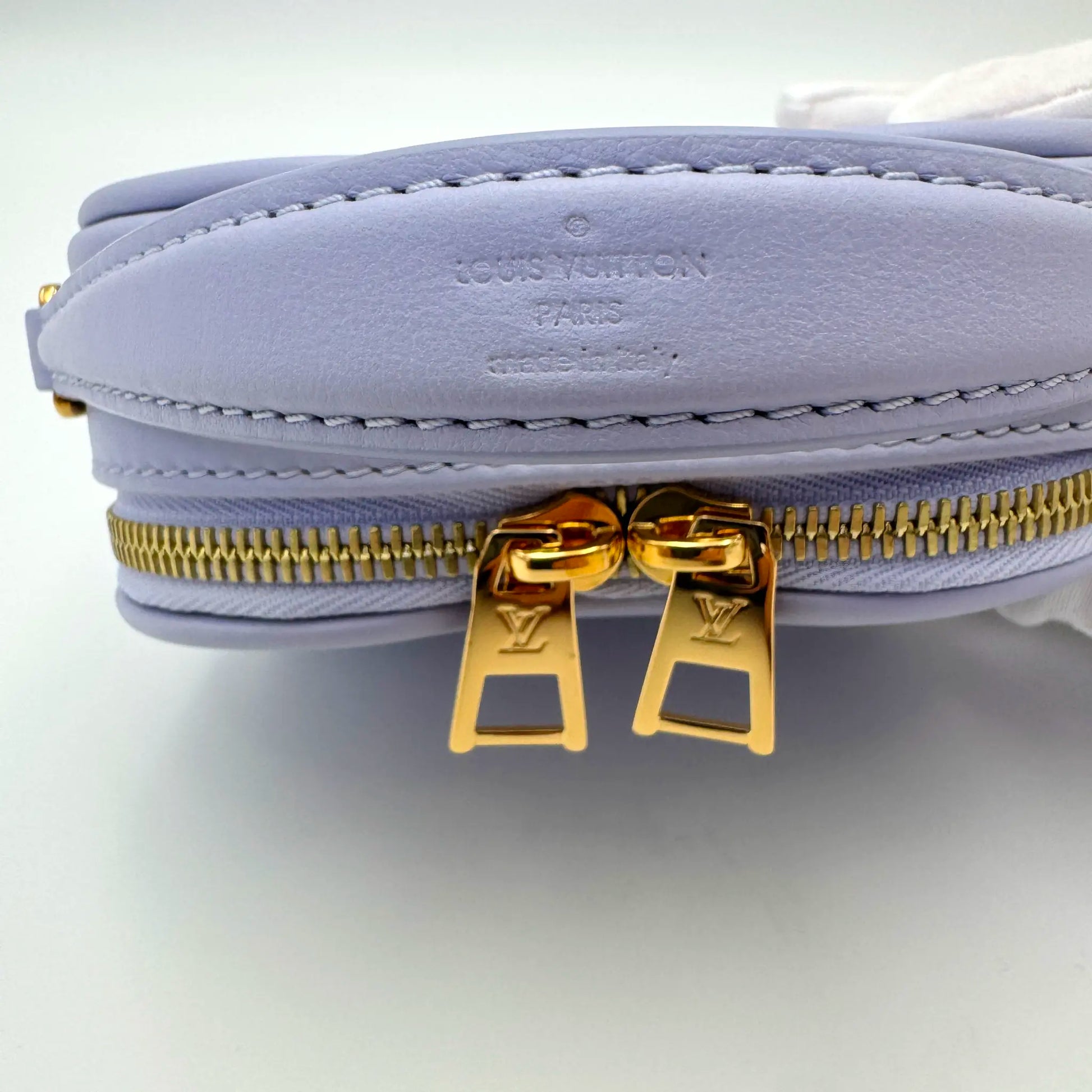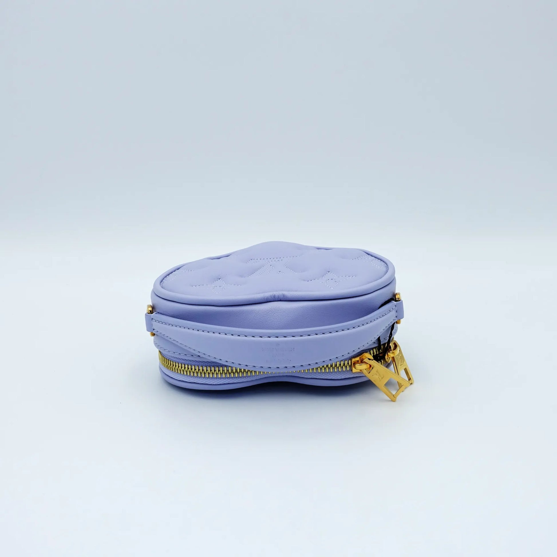From Louis Vuitton’s Bubblegram capsule, the Pop My Heart pouch is a playful yet luxurious design crafted in lilac quilted calf leather, embossed with the iconic Monogram pattern. This structured heart-shaped mini features a double zip closure, sturdy top handle, and removable chain strap for multiple carry options. Released as a Valentine’s Day exclusive, this limited-edition piece is both a romantic statement and a collector’s item, perfect for adding charm and colour to any luxury wardrobe.
